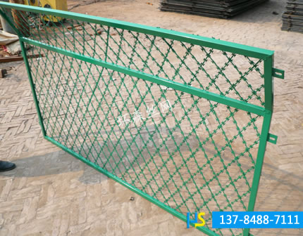 【公司電話】13784887111 【公司地址】河北省衡水市安平縣徐疃工業(yè)園區(qū) 【產(chǎn)品摘要】刺絲刺繩護(hù)欄網(wǎng)網(wǎng)也稱為刀片刺絲護(hù)欄網(wǎng)、刀片刺網(wǎng)護(hù)欄網(wǎng),是一種新型護(hù)欄網(wǎng)產(chǎn)品。是在兩條刀片刺網(wǎng)之間以不銹鋼片和鍍鋅鋼片強(qiáng)力夾扣,展開后即呈交叉狀。它具有嚇阻效果好、美觀、施工便利,經(jīng)濟(jì)實用等優(yōu)異特點。主要用于園林公寓,機(jī)關(guān)單位,監(jiān)獄,哨所,邊防等的圈禁防護(hù)。