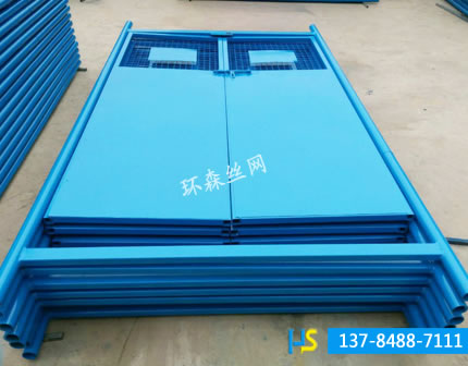 電梯井口防護(hù)網(wǎng)以焊接網(wǎng)片、鋼板網(wǎng)片、沖孔網(wǎng)片、擋板、方管為主要結(jié)構(gòu)。