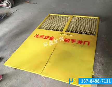 電梯井口防護(hù)網(wǎng)的開關(guān)插銷設(shè)計(jì)在外面一側(cè),從里面內(nèi)側(cè)無法開關(guān)的。